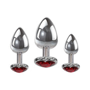 - Set of 3 metal anal plugs with red heart jewel bases