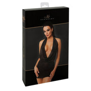This stunning mini dress is perfect for those nights when you want to turn heads and feel like the center of attention. Crafted from a shimmering, semi-sheer fabric, this dress is designed to dazzle and captivate at any event. The entire Luminara dress is made from a soft, lightweight, and slightly transparent fabric with a subtle shimmer. The fabric drapes beautifully over the body, catching the light with every movement. The dress features a deep plunging halter neckline, offering a tantalizing glimpse of the decolletage. The draped front adds a touch of elegance, while the backless design, secured with a thin strap, exudes confidence and allure. It's designed to contour the body, and hug your curves in all the right places, offering a comfortable stretch that moves with you. The short length accentuates the legs, making it perfect for pairing with your favourite heels