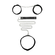 OUCH! BW Velcro Collar With Leash And Hand Cuffs - Black Restraints