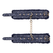 Sex & Mischief Cougar Fur Handcuffs - Navy Blue/Gold Furry Restraints