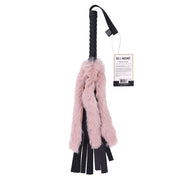 Sex & Mischief Brat Faux Fur Flogger - Black 50 cm Whip with Pink Faux Feather
