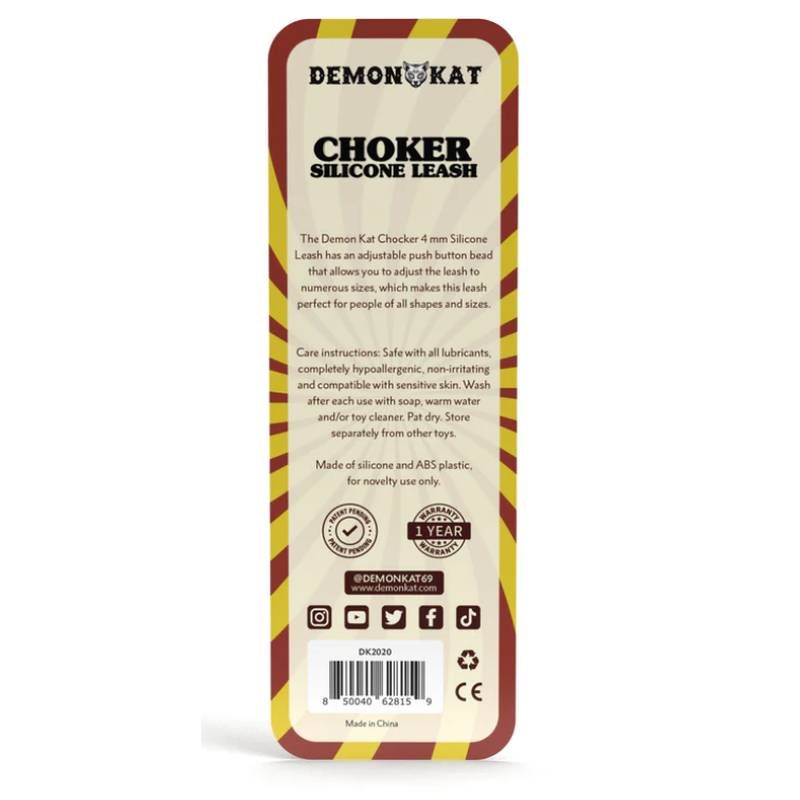 The Demon Kat Choker Silicone Leash has an adjustable push button bead that allows you to adjust the leash to numerous sizes, which makes this leash perfect for people of all shapes and sizes.